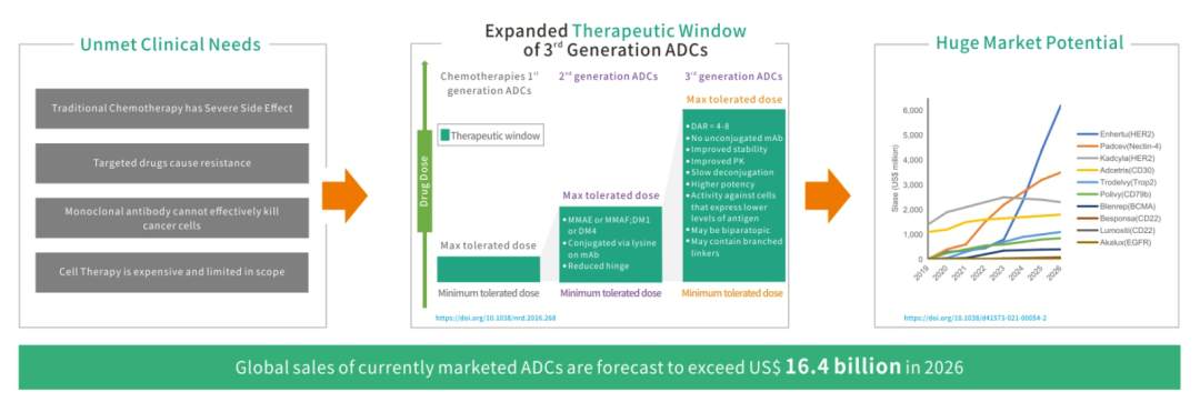 ADC是一类有效的癌症疗法,其结合了抗体的选择性与化学疗法或其他抗癌剂强效的细胞杀伤功能。