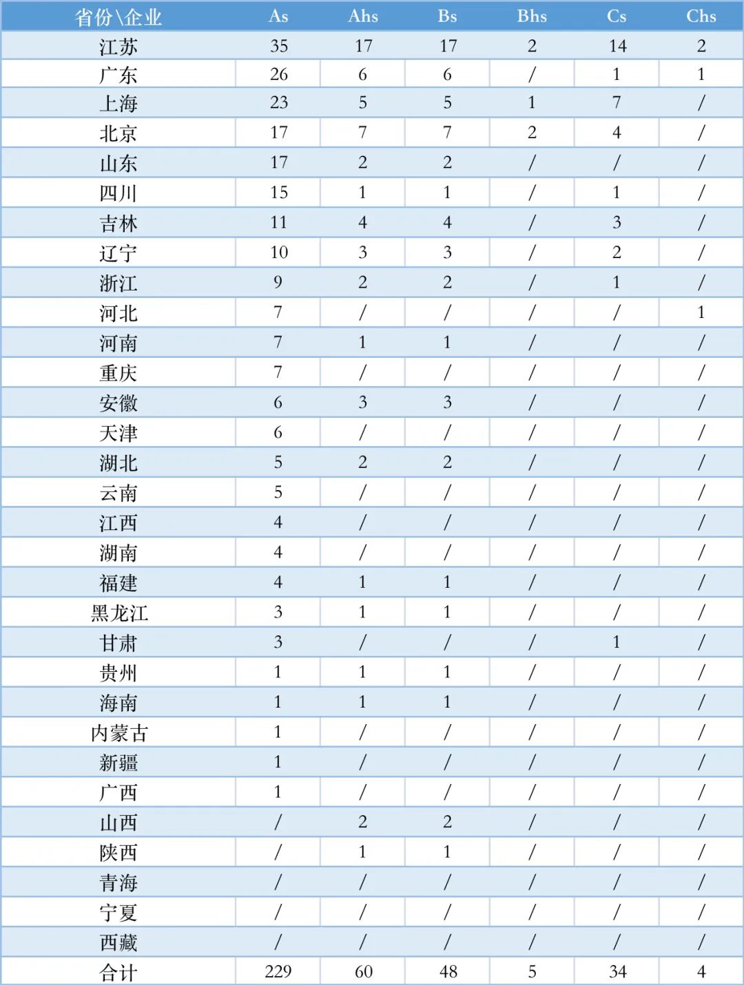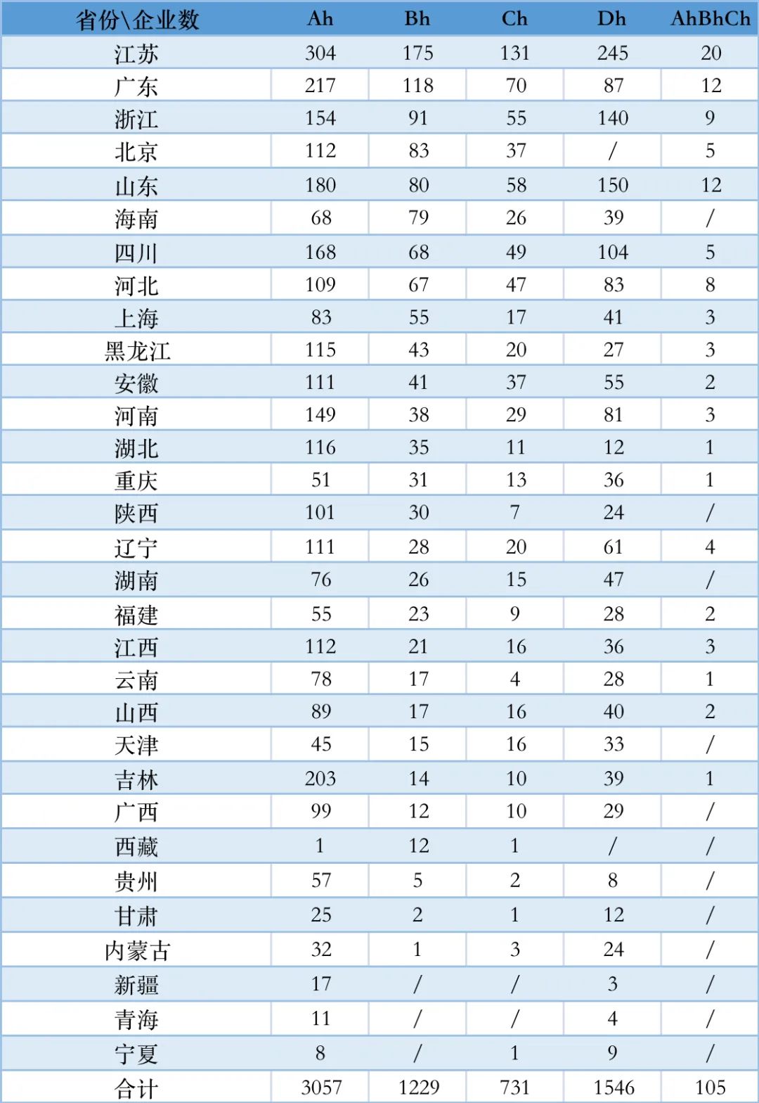 A证、B证、C证都齐全的企业共105家,主要集中在江苏、广东和山东。