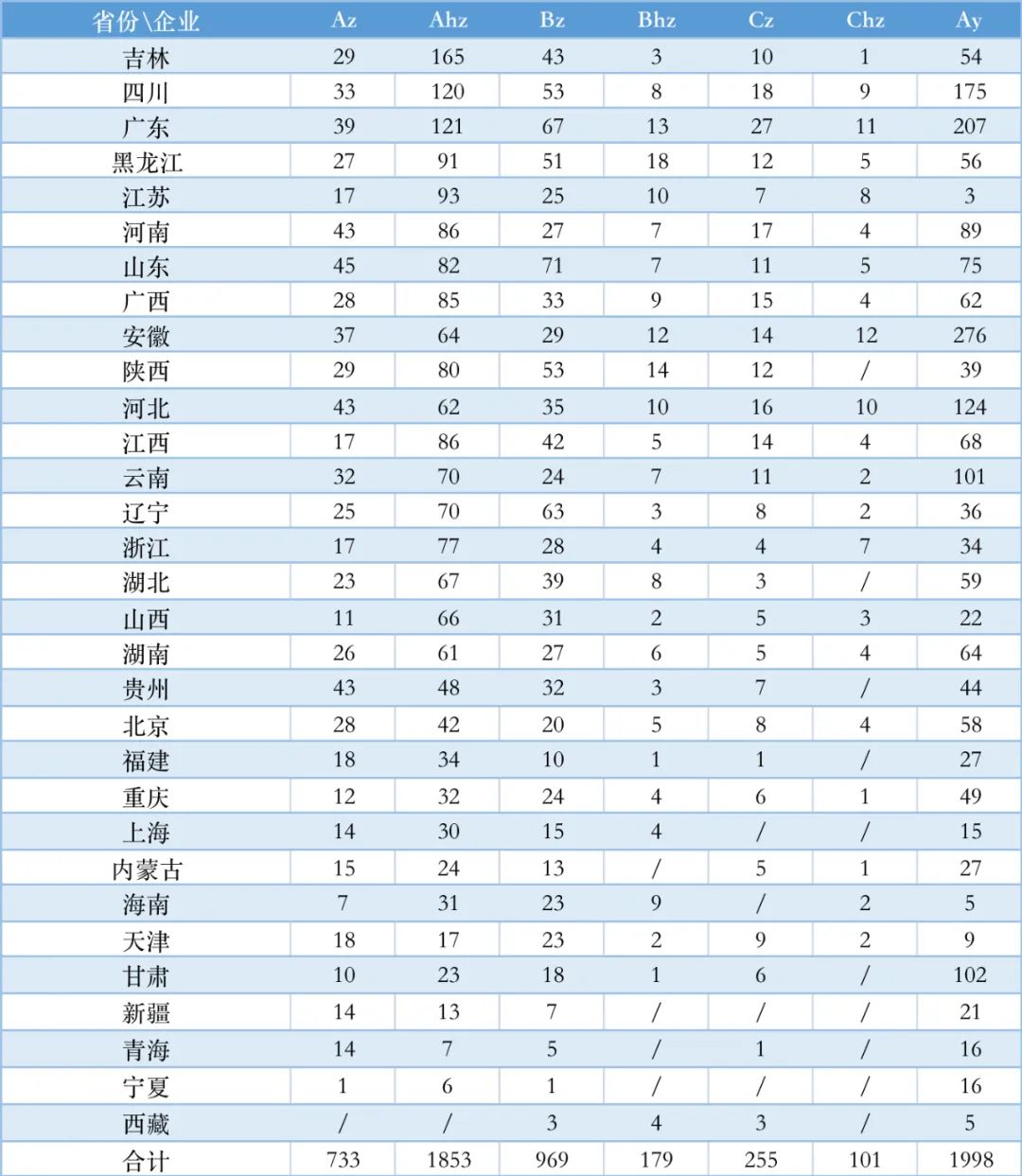 东北三省中的吉林和辽宁A证企业都超过100家,但是开展B证和C证业务的并不多。