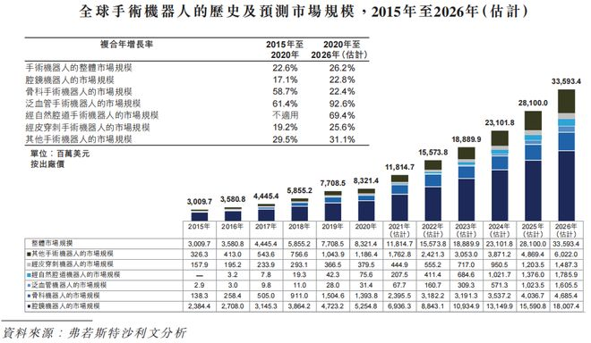 全球手术机器人历史及市场预测 来源:弗若斯特沙利文