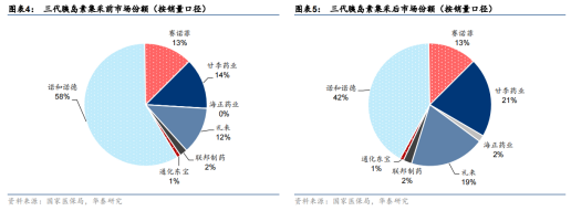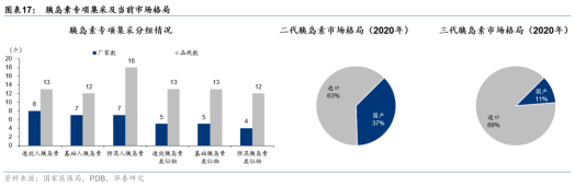 二则,虽然本次集采后我国胰岛素市场仍由诺和诺德、赛诺菲、礼来等外资企业占据主导地位,但国产厂家的市场份额均有所提升,主要系外资龙头诺和诺德(多以降价40%策略中标)和礼来的市场份额均有所下滑,市场格局出现了调整。