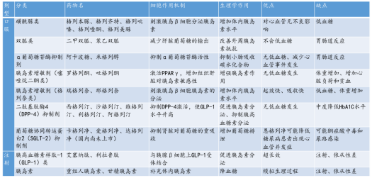 ▲降糖药的分类、代表药物、作用原理和优缺点表 资料来源:东吴证券研究所