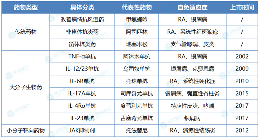 注:图中所注上市时间为药物的自免适应症在美国获批时间