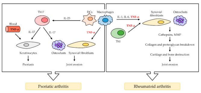 TNF-α在RA和银屑病关节炎的作用[6]