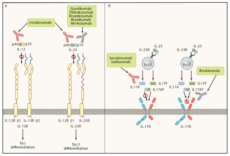 IL-17、IL-12/23和IL-23靶向生物制剂的作用机制[10]