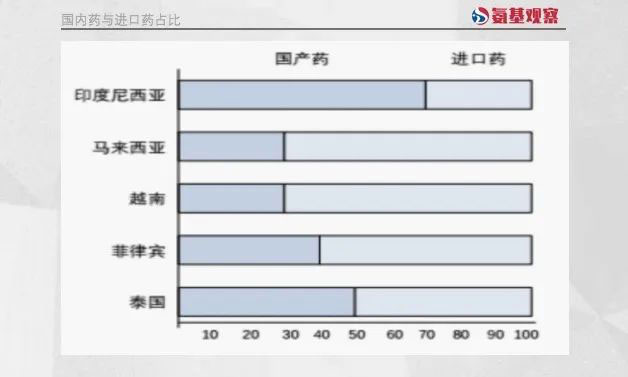 如下图所示,除印度尼西亚,马来西亚、越南、菲律宾、泰国对于进口药的消耗费用,占比均超过50%,越南更是接近70%。