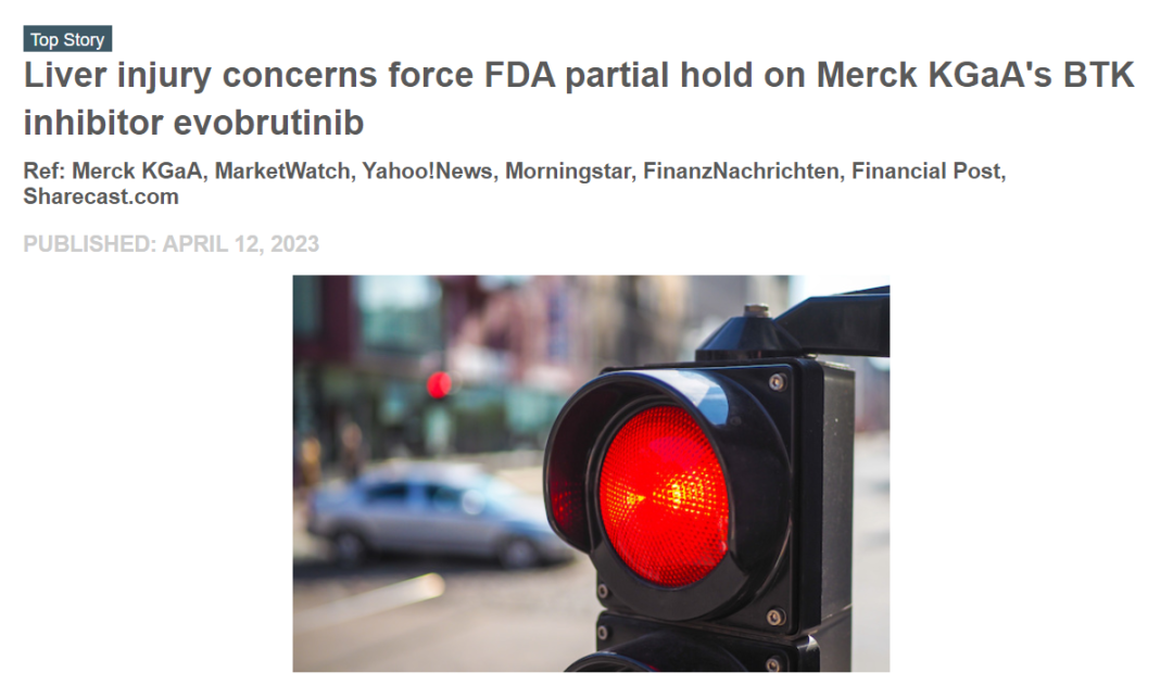 4月12日,默克宣布:在BTK抑制剂Evobrutinib的III期研究中发现两例肝毒性病例后,FDA对试验进行了部分临床搁置。这项部分搁置决定涵盖了刚开始使用Evobrutinib的新患者,及在美国接受药物不到70天的患者。