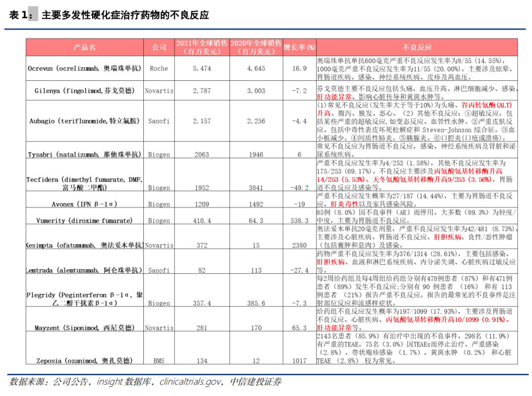 目前,美国FDA已批准的治疗MS的26个治疗药物中,有24个治疗药物的说明书中都包含了“肝毒性”“肝损伤”“自身免疫性肝炎”等肝脏不良反应的描述。同时,大量临床试验为了监控患者肝毒性问题,常常会加强转氨酶监测。