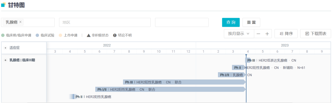 作为 III 期临床的首发适应症,该药在乳腺癌领域的布局也是最广的。不光针对不同 HER2 表达亚型,在 II 期临床阶段,恒瑞还布局有一项新辅助治疗临床试验。