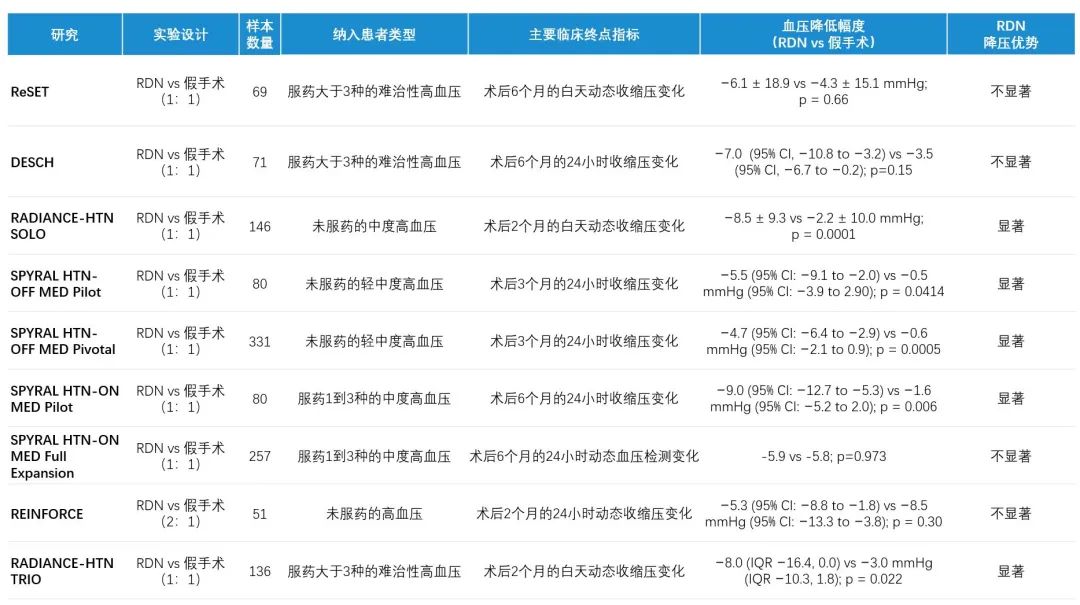 图:主要随机假手术对照RDN研究结果 来源:文献资料[22],沙利文分析