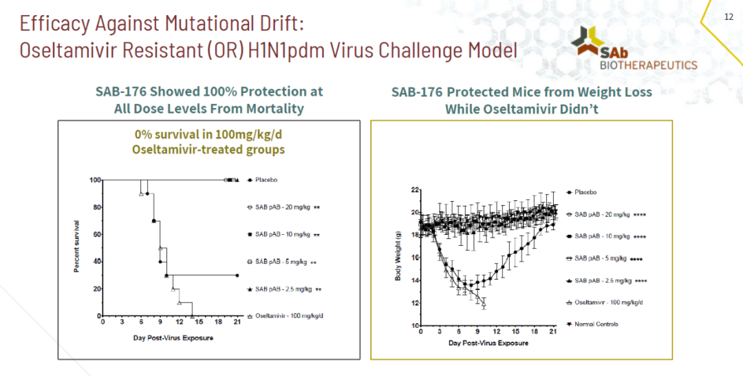 ▲SAB-176对奥司他韦耐药性病毒株产生疗效(图片来源:SAB Biotherapeutics公司官网)
