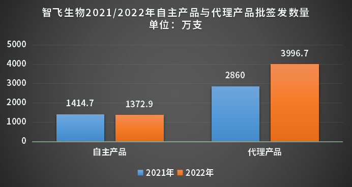 据年报数据显示,2022年其自主产品批签总量为1372.9万支,同比下降2.95%(不包括疫苗);而与之相对的,代理产品批签发3996.7万支,同比增长39.74%。此消彼长之下,整体净利率自然下降厉害。