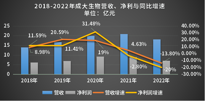 2021年,成大生物业绩出现增收不增利,彼时大众对其结构单一、市占率下降的现象就表示了担心,如今2022年业绩公布,终究还是没能逃过“逆增长”的厄运。