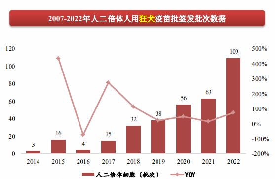 另外,狂犬疫苗市场竞争越发激烈,后来者技术迭代愈发频繁,如智飞生物冻干人用狂犬病疫苗(MRC-5细胞)已经获得了III期临床试验总结报告,2023年有望进入注册申报阶段。