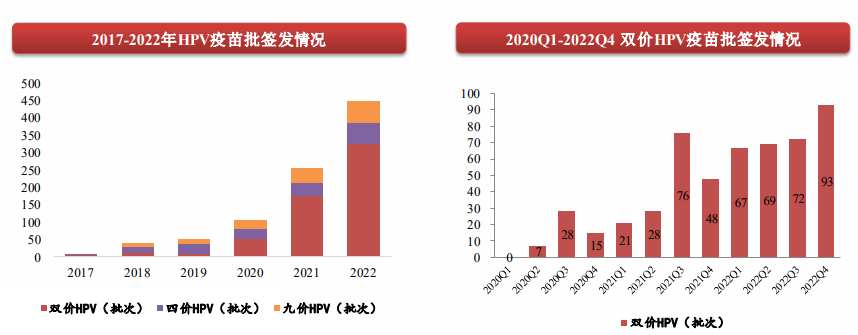 另外,万泰生物2价HPV疫苗批签发高增,也可以充分印证上述观点,2022年万泰生物2价HPV疫苗共计签发288批次,同比增长76.69%,是所有HPV疫苗中增速最快的业务。