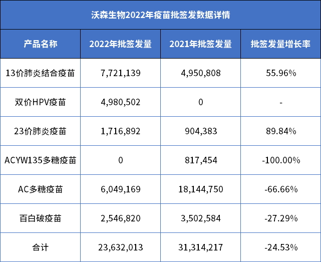 纵观历史,超50亿元的营收创下沃森生物上市以来的最高水平,其中13价肺炎疫苗和2价HPV疫苗的重磅上市,是最主要的原因。据相关数据显示,沃森2价HPV疫苗全年共计批签发498.05万剂(2022年5月获批),13价肺炎结合疫苗批签发772.11万剂,同比增长55.96%。