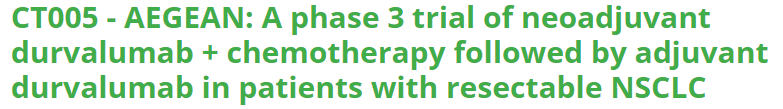 Insight 补充:AEGEAN 试验达到了改善 pCR 和 EFS 的两个主要终点。围手术期 D 加新辅助 CT 与可控的安全性相关。AEGEAN 是第一个围手术期免疫加新辅助化疗获益的 III 期研究,该研究为可切除 NSCLC 患者带来潜在新治疗方案,也为将来在此获益基础上设计新的联合用药方案奠定了基础,未来的随访研究结果值得期待。