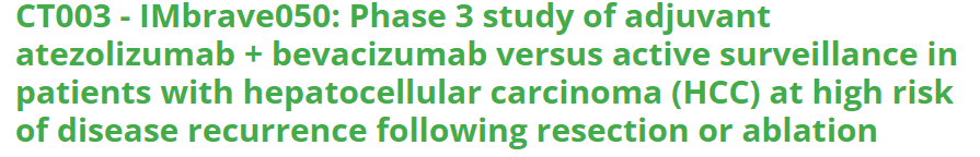 而 IMbrave050 研究旨在评估该方案对手术切除或消融后高复发风险的 HCC 辅助治疗的疗效。作为首个高复发风险肝细胞癌患者中的辅助治疗,该疗法曾获 FDA 突破性疗法认定。