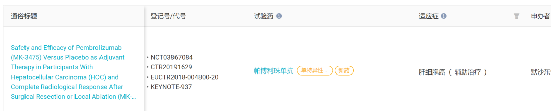 罗氏在今年 1 月初步公布的中期结果显示,与主动监测相比,「T+A」疗法在以治愈为目的的切除或消融后复发风险增加的肝癌患者意向治疗人群中,无复发生存期方面有统计学意义的改善,且没有新的安全问题。同样为免疫疗法的帕博利珠单抗在 KEYNOTE-937 试验(登记号:NCT03867084)也将会在辅助治疗肝细胞癌中的应用带来关键性循证证据支持。