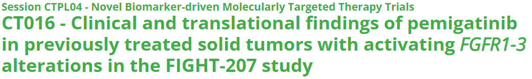安全性与之前的报告一致。除胆管癌外,Pemigatinib 在神经胶质瘤、妇科肿瘤和胰腺癌中显示出临床活性,安全性与之前的报道一致。