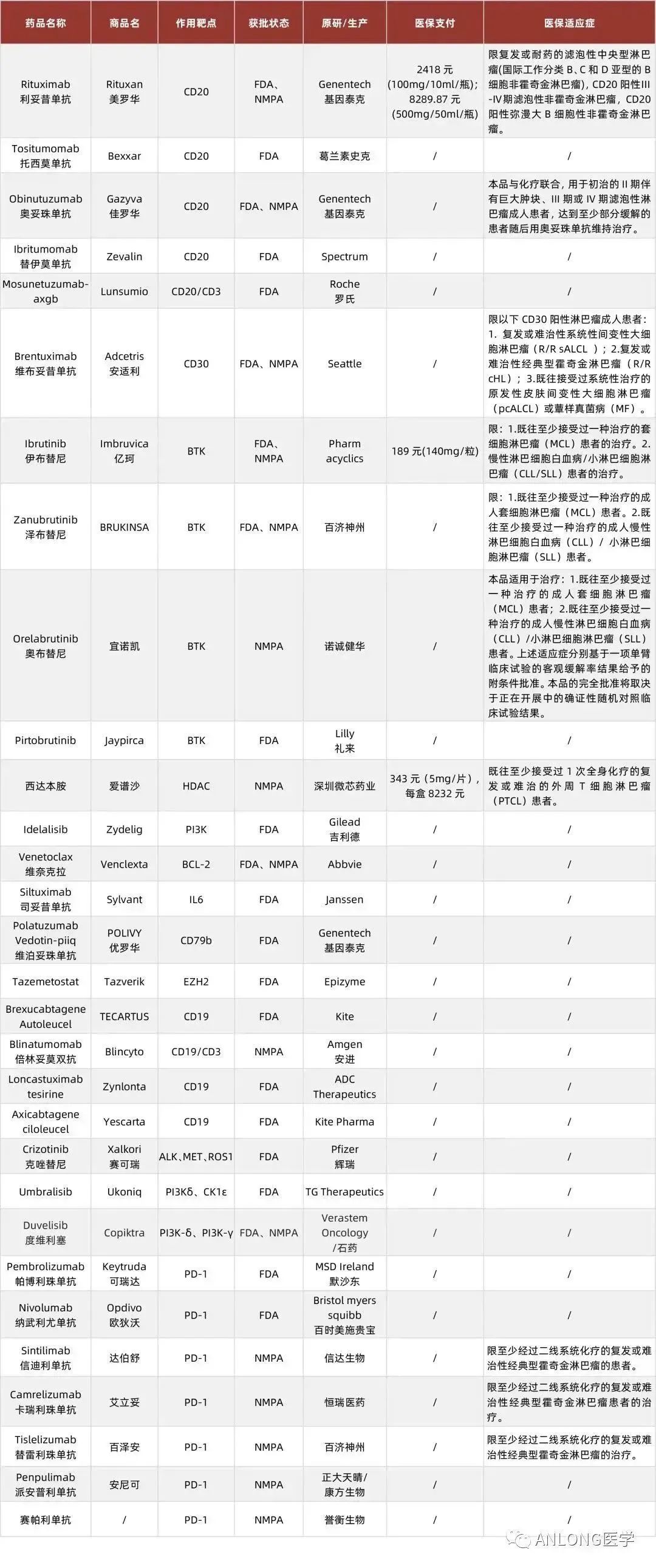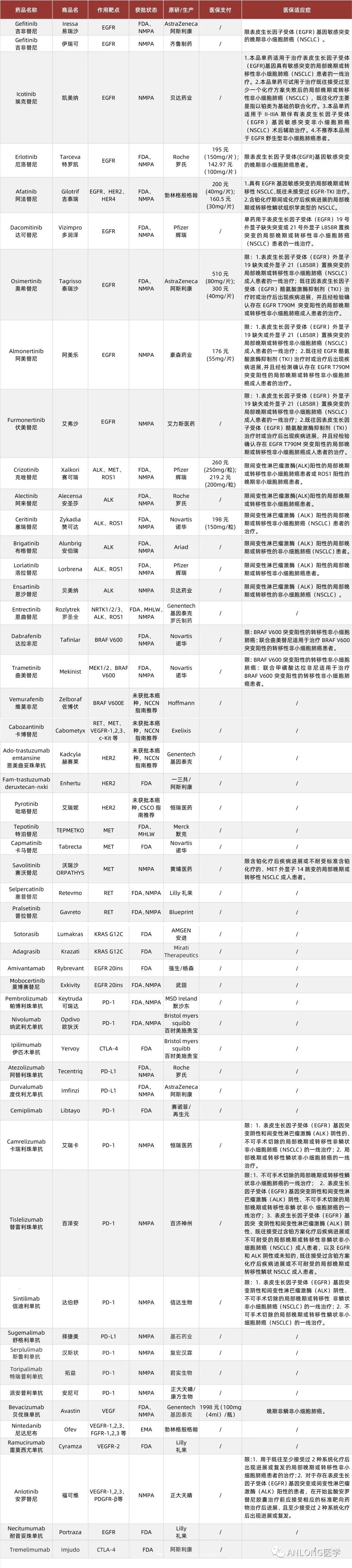 本文结合2023年最新医保纳入情况及医保适应症等相关信息,对肿瘤靶向和免疫治疗领域,经FDA/NMPA获批及NCCN/CSCO指南推荐的20余个癌种的药物进行了总结。