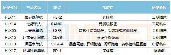 复宏汉霖在研的6款生物类似药