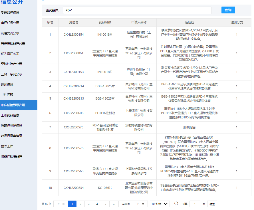 图2 国内临床阶段PD-1药物 图片来源:CDE官网