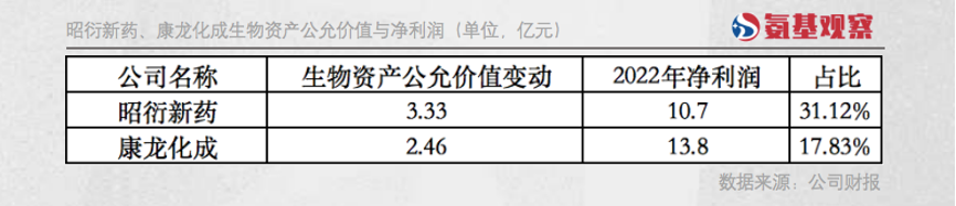 康龙化成也不例外。2022年,公司生物资产公允价值变动带来的利润为2.46亿元,占利润比重为17.83%。