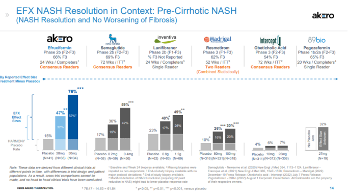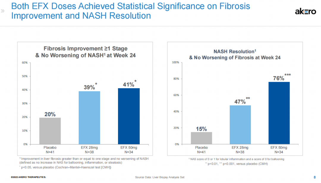 NASH药物组织学改善效果对比 (来源:Akero官网)
