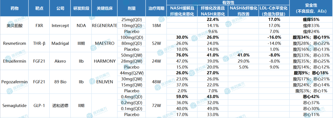 5款在研NASH药物疗效及安全性数据