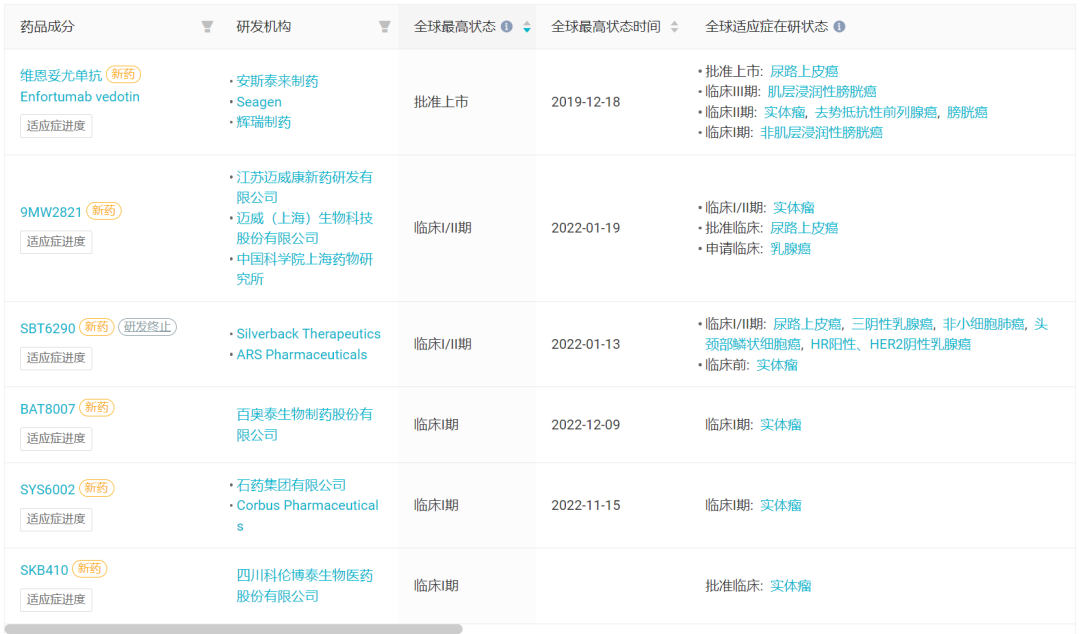 全球进入临床阶段的 Nectin-4 ADC 项目