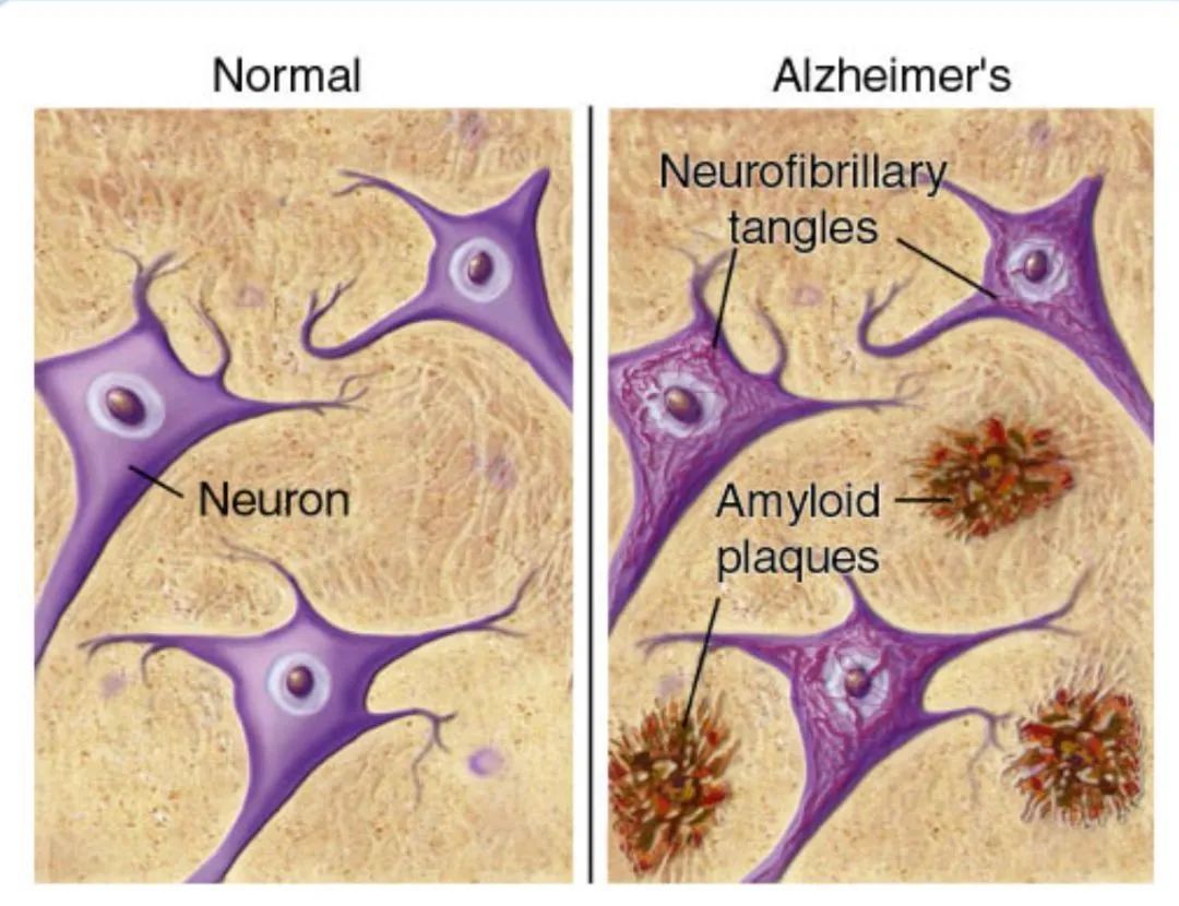 图:正常人脑部与阿尔兹海默患者脑部对比