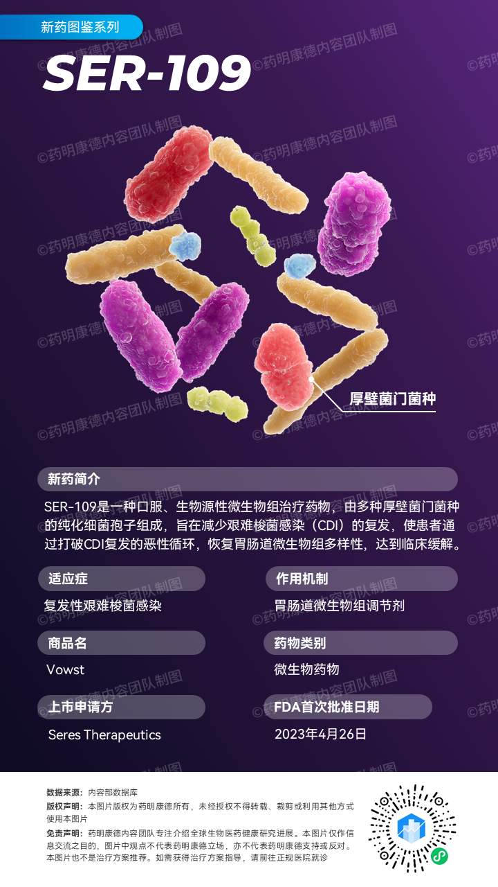 今日,美国FDA宣布,批准Seres Therapeutics公司口服微生物组疗法Vowst(SER-109)上市,用于在18岁以上成人中预防艰难梭菌感染(CDI)复发,这些患者曾经接受过抗生素治疗。新闻稿指出,这是FDA批准的首款口服粪便微生物组疗法,代表着微生物组疗法研发的重要里程碑。这款疗法在过去的十年里,经历了一波三折,如今终于硕果累累。它的获批历程也印证了该公司联合创始人,同时也是著名风投公司Flagship Pioneering的创始人兼首席执行官Noubar Afeyan博士的观点:“创新科学研究需要经历不断的挫败与经验积累,方能成就辉煌。”