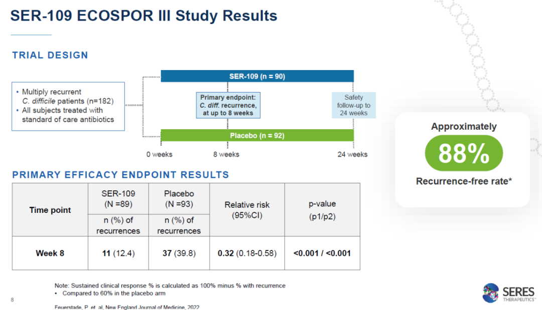 ▲SER-109的3期临床试验结果(图片来源:Seres公司官网)
