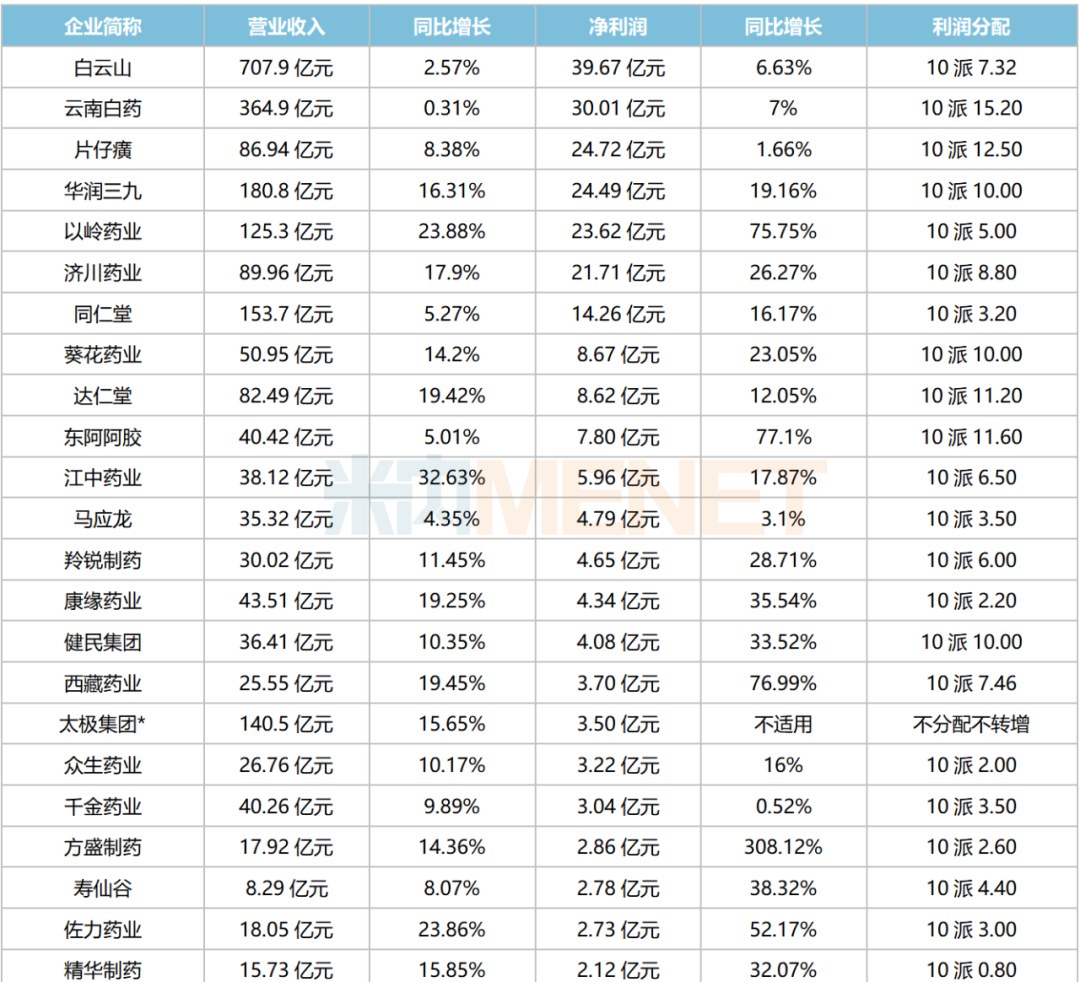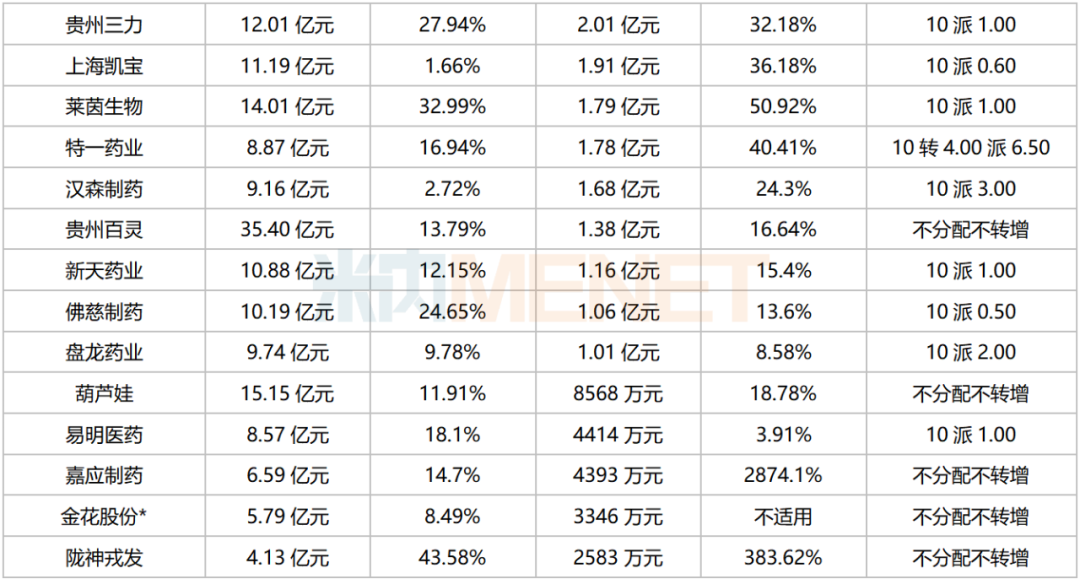 注:带*为扭亏 来源:东方财富网,米内网整理