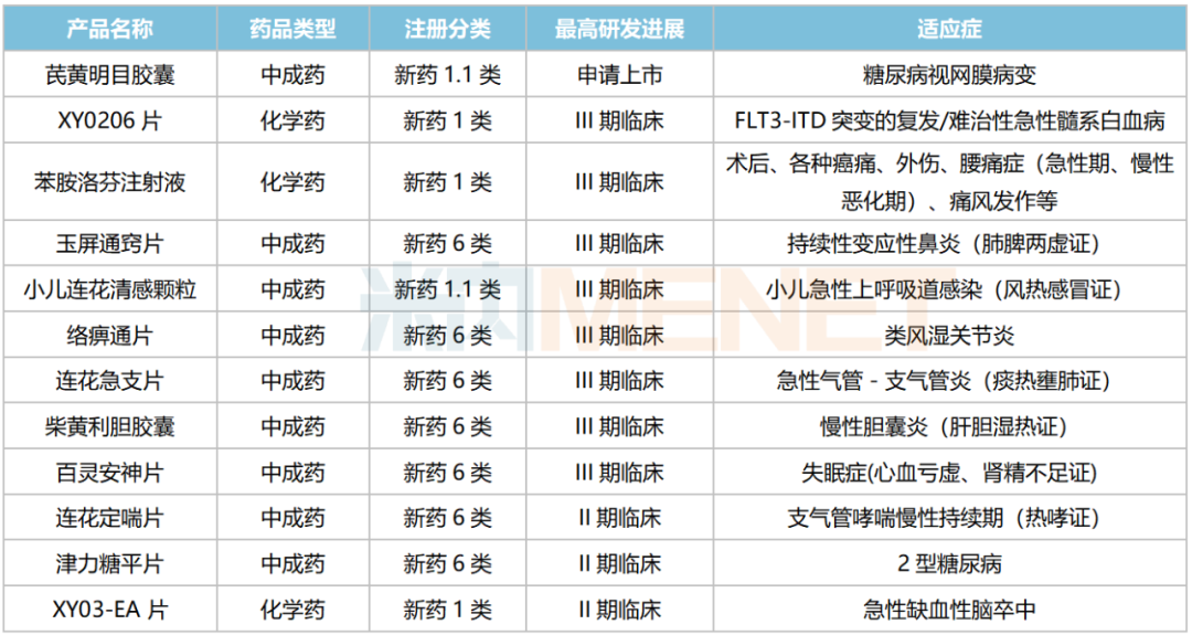 在创新中药方面,继小儿荆杏止咳颗粒、玄七健骨片相继获批后,中药1.1类新药诺丽通颗粒完成III期临床研究并提交了上市申请,适应症为反复发作性紧张型头痛。此外,用于血管性痴呆(瘀阻脑络证)的复方银杏叶片已步入III期临床,蛭龙通络片、健胃祛痛微丸均处于II期临床。