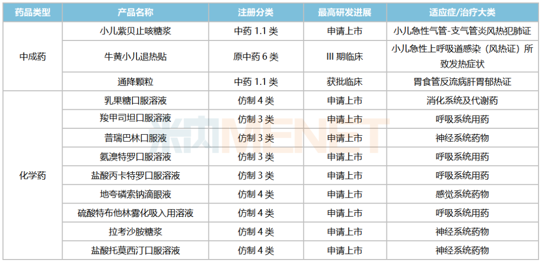 米内网数据显示,目前公司有3款中药新药处于获批临床及以上阶段,1.1类新药小儿紫贝止咳糖浆已提交NDA,牛黄小儿退热贴在开展III期临床;此外,9个新分类报产品种在审。