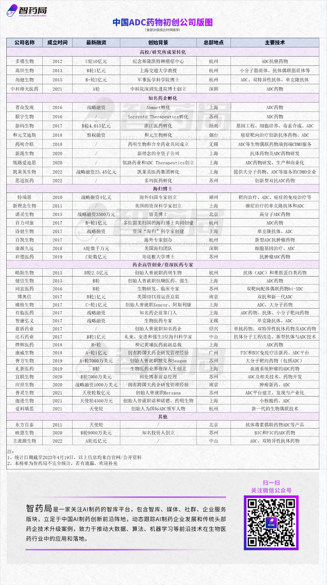 据智药局监测,中国ADC药物初创公司已超 40 多家。