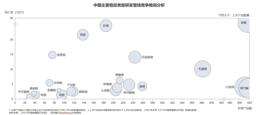 图3 中国主要癌症类型研发管线竞争格局分析(数据来源:医药魔方)