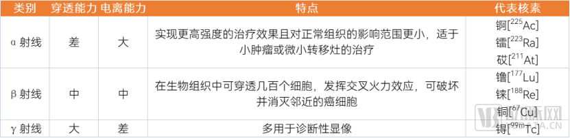 治疗类核素正在从β核素向α核素发展,锕[225Ac]、砹[211At]、钍[227Th]潜力巨大。在治疗性核药上,目前行业以镥[177Lu]为代表的β核素关注度最大,但行业目光正从β核素向α核素发展,与β射线相比,α射线的粒子质量更大,具有更高的效力和更短的射程,靶向α治疗能够在靶点的有限区域内表现显著的细胞毒性效应,对其他健康组织和器官的有害辐射剂量较低,实现更高强度的治疗效果且对正常组织的影响范围更小。