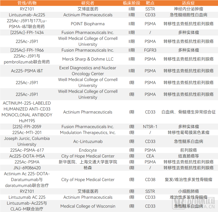 进入临床阶段的锕[225Ac]核药