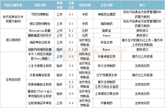 2023年4月,有2个古代经典名方中药复方制剂、3个进口原研药申请上市。
