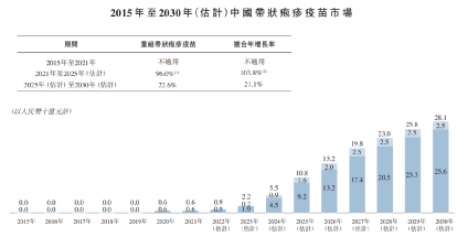 ▲2015-2030年中国带状疱疹疫苗市场 来源:招股书