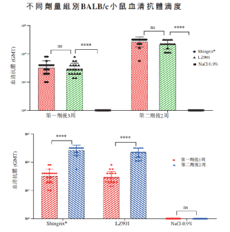▲Shingrix和LZ901不同剂量组别BALB/c小鼠血清抗体滴度 来源:招股书