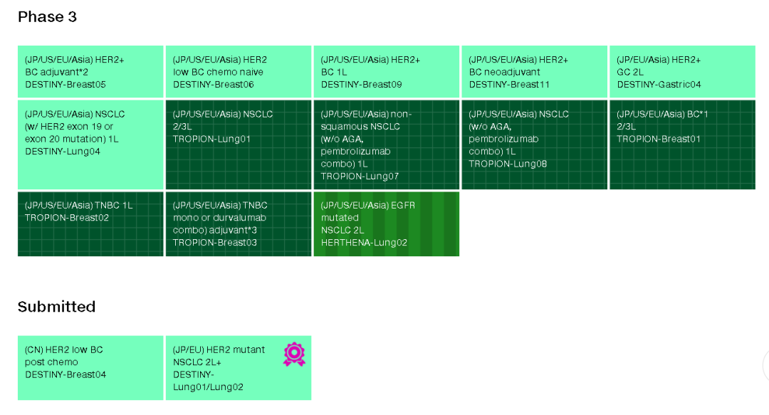 从第一三共的营业收入与支出表中不难看出,该公司大幅增加了研发和销售投入,因为销售投入的增加,销售额实现了普遍性地增长,而研发投入的增加,则主要是用于开发ADC药物。第一三共因为先进的ADC平台技术,已经成为资本市场的宠儿,这也是该公司,该公司的管线也比较丰富,所以ADC和抗肿瘤药物将是该公司未来主要的看点。