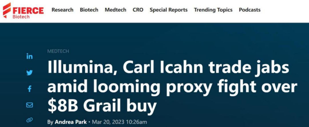 今年3月,持有 Illumina 1.4% 股份的知名投资人Carl Icahn 向 Illumina 股东发出的公开信,他指出:“Illumina 为收购 Grail 付出了过高的代价,且可能面临欧洲监管机构 4.58 亿美元的罚款;Illumina 现在被迫每年支付 8 亿美元的运营成本,但对 Grail 没有控制权;即便按照原价出售 Grail,仍需要缴纳多达 17.5 亿美元的税款。”