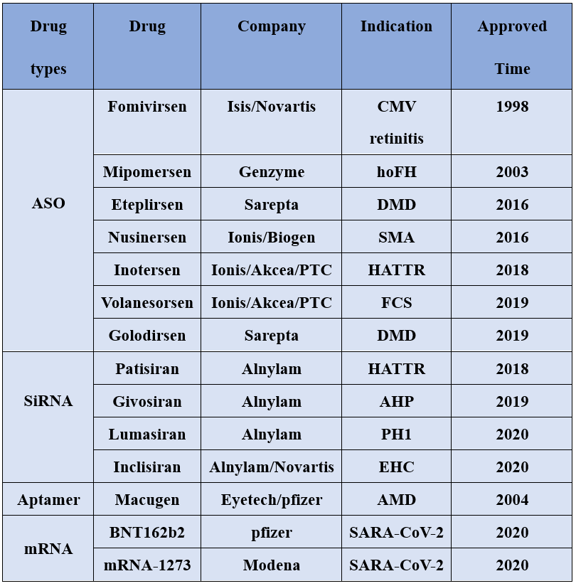 图1.已上市的核酸药物