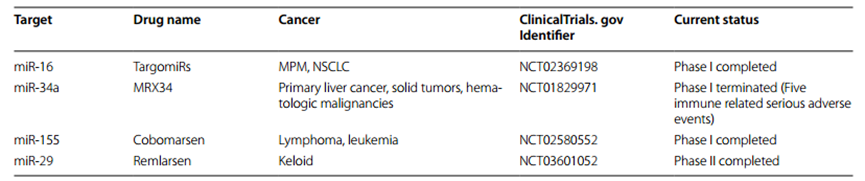 图4.已进入临床试验的miRNA