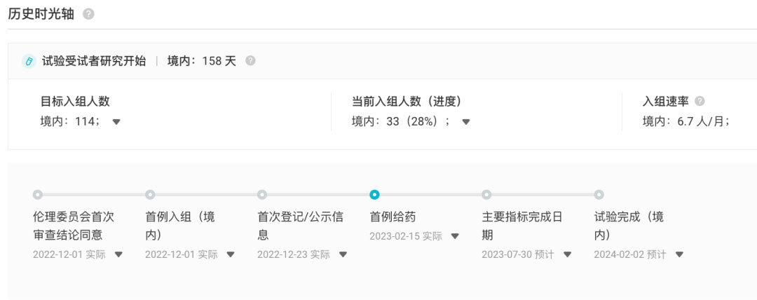 2. 信达生物:2023 年 2 月 IBI311 重组抗胰岛素样生长因子 1 受体(IGF-1R)抗体注射液 IBI311 完成 II 期临床研究(登记号:NCT05795621)中首例研究参与者给药,该药用于治疗甲状腺眼病,该疾病在欧洲认定为罕见病。目前,替妥木单抗(Teprotumumab)是海外唯一获 FDA 批准用于 TAO 治疗的孤儿药,国内尚未有针对 TAO 的药物获批。NCT05795621 试验历史时光轴