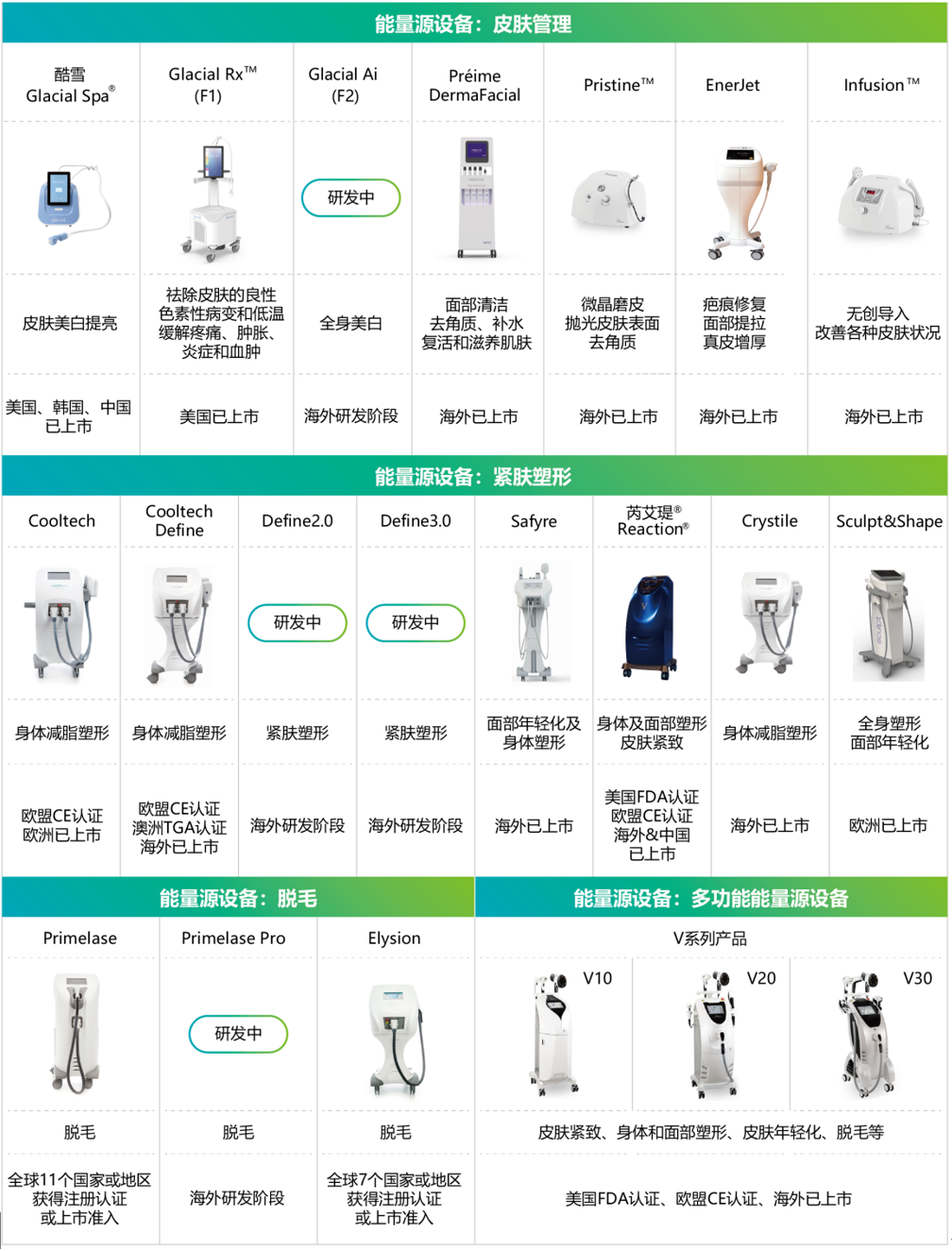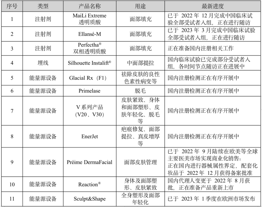 华东医药是国内率先开启国际化医美布局的企业,通过管理、整合全球资源,华东医药的全球医美业务目前已拥有无创+微创医美领域产品36款,其中海内外已上市产品达24款,在研全球创新产品12款,产品组合覆盖面部填充、面部清洁、埋线等非手术类主流医美领域,产品数量和覆盖领域均居行业前列,具备极高的发展潜力。